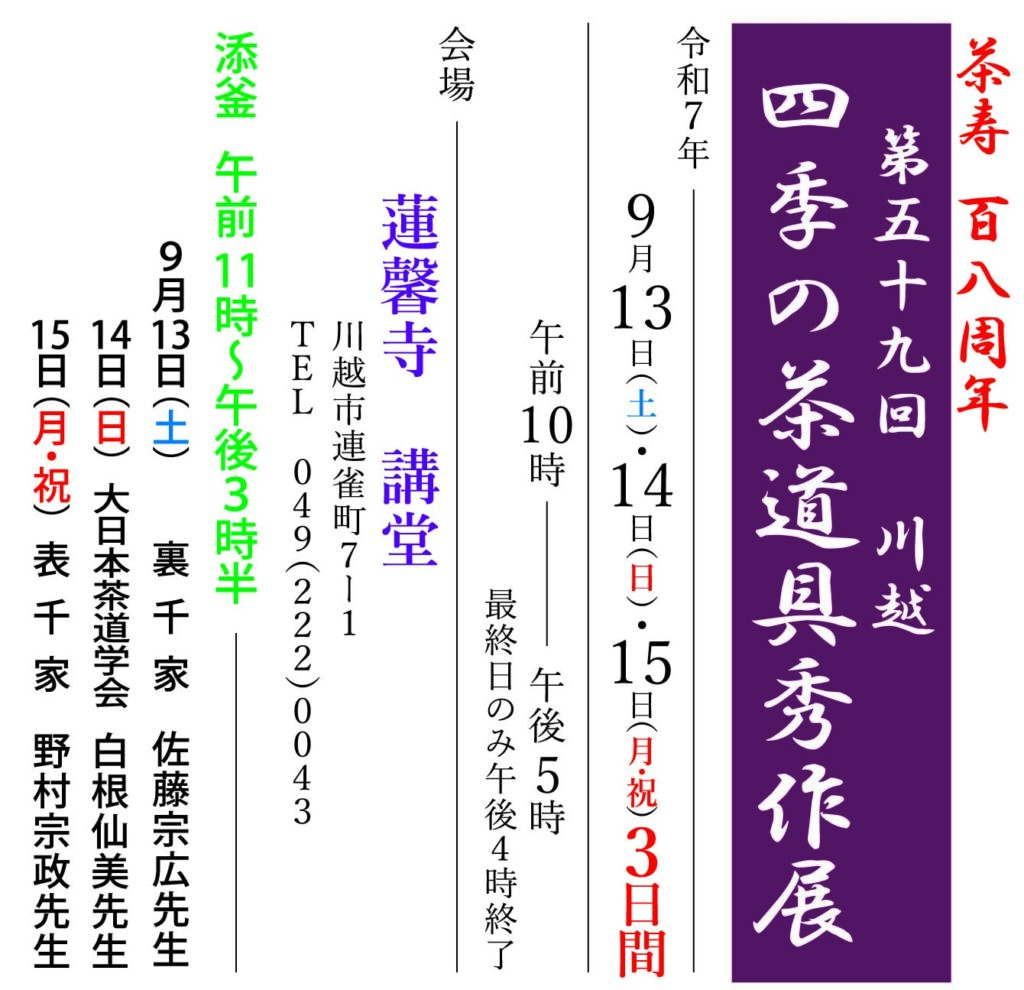 川越 四季の茶道具秀作展 9/13(土)~15(月・祝)