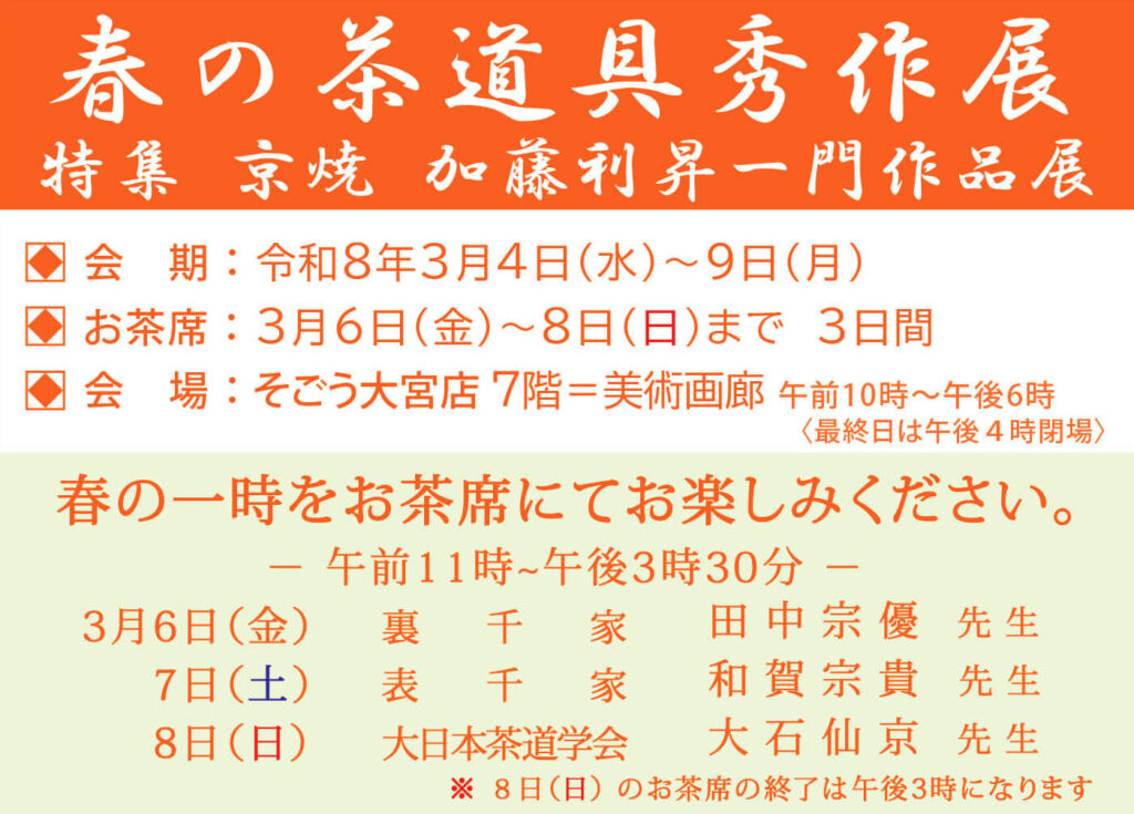 今回は特集としまして 京焼 加藤利昇一門作品展 がございます。