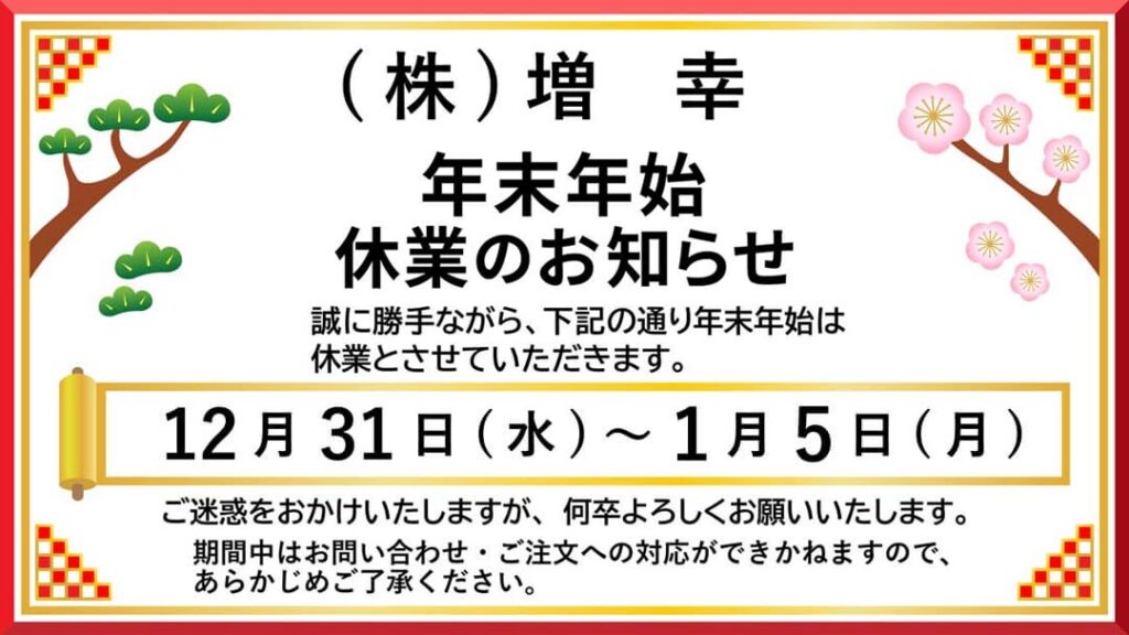 年末年始休業のお知らせ